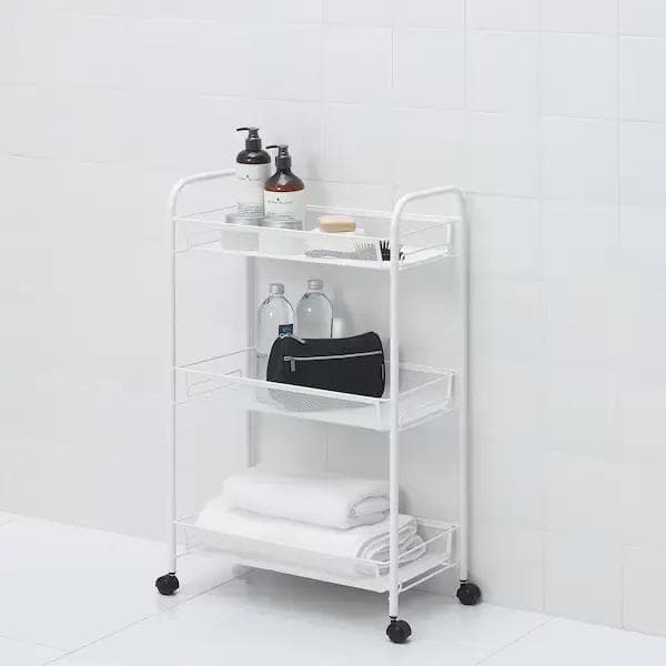 An easy way to add shelf space to your bathroom so that you can organize and store your toiletries. This trolley rolls to where you need it and is sized for easy parking even in smaller spaces.